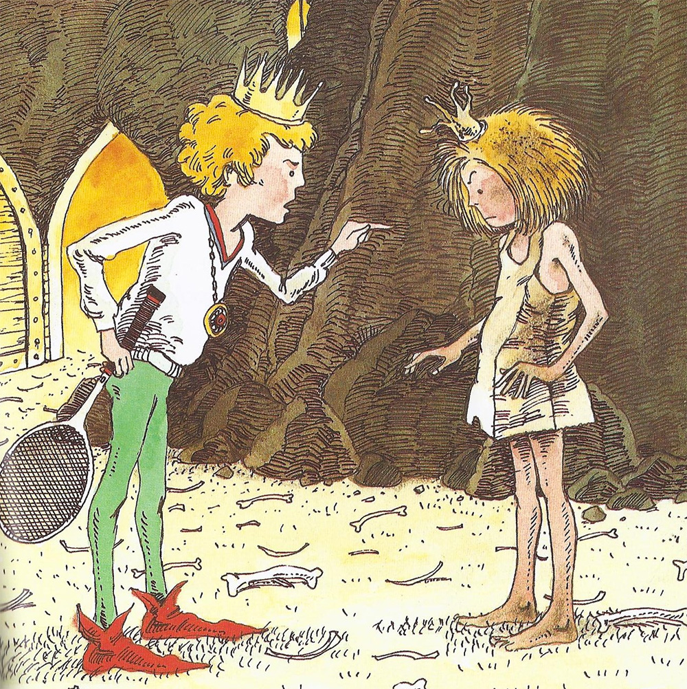 In Paper Bag Princess, a whiny loser prince named Ronald gets kidnapped by a dragon. In the process, princess Elizabeth’s castle, including her clothes gets burnt into smithereens.