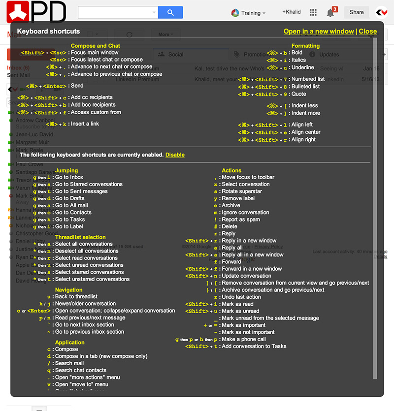 There’s not a day that goes by that I don’t use gmail. Once I found out about gmail shortcuts, my process-obsessed mind made it a priority to learn and implement. Everyone on my team is required to learn and use, at minimum, the basics.